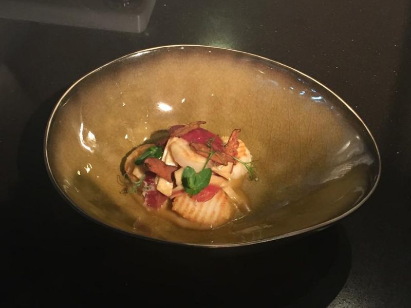 26. Presentatie: Verdeel de noedels in een verwarmd diep bord en leg hierop twee coquilles.